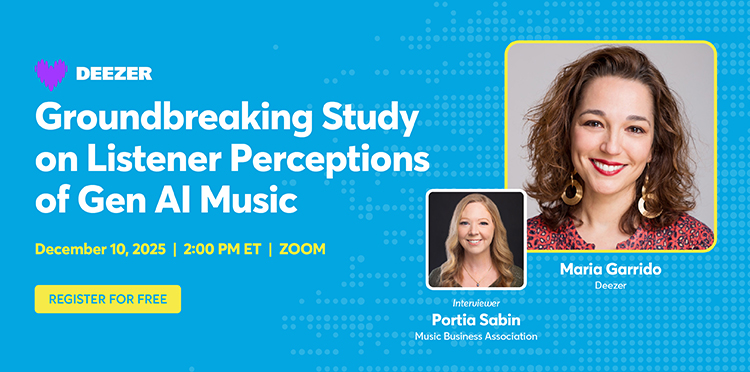Join us on December 10th as Deezer’s CMO, Maria Garrido dives into the findings of the world-first study conducted by Deezer and Ipsos, which surveyed 9,000 people across 8 countries to understand how listeners perceive fully AI-generated music. One of the most striking discoveries: 97% of listeners were unable to identify which tracks were fully AI-generated during a blind test. In this webinar, we unpack what this means for the music industry, how audiences feel about the rise of GenAI music, and how platforms and the industry as a whole should build trust.